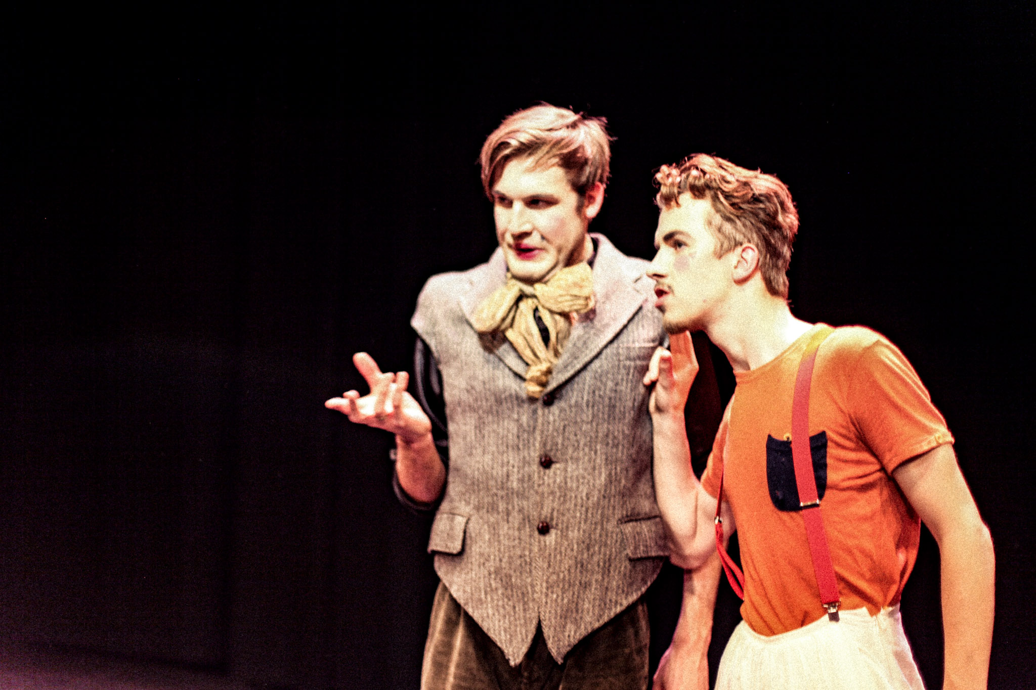With only six actors, a musician, and some outlandish getup, Les Foules tell the epic farcical fable of Quinola, the quick-witted servant with a “heart of gold,” who serves the love-struck genius inventor Fontanares.